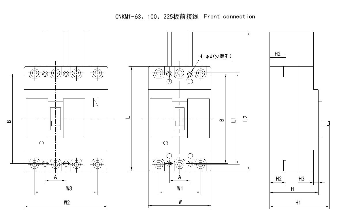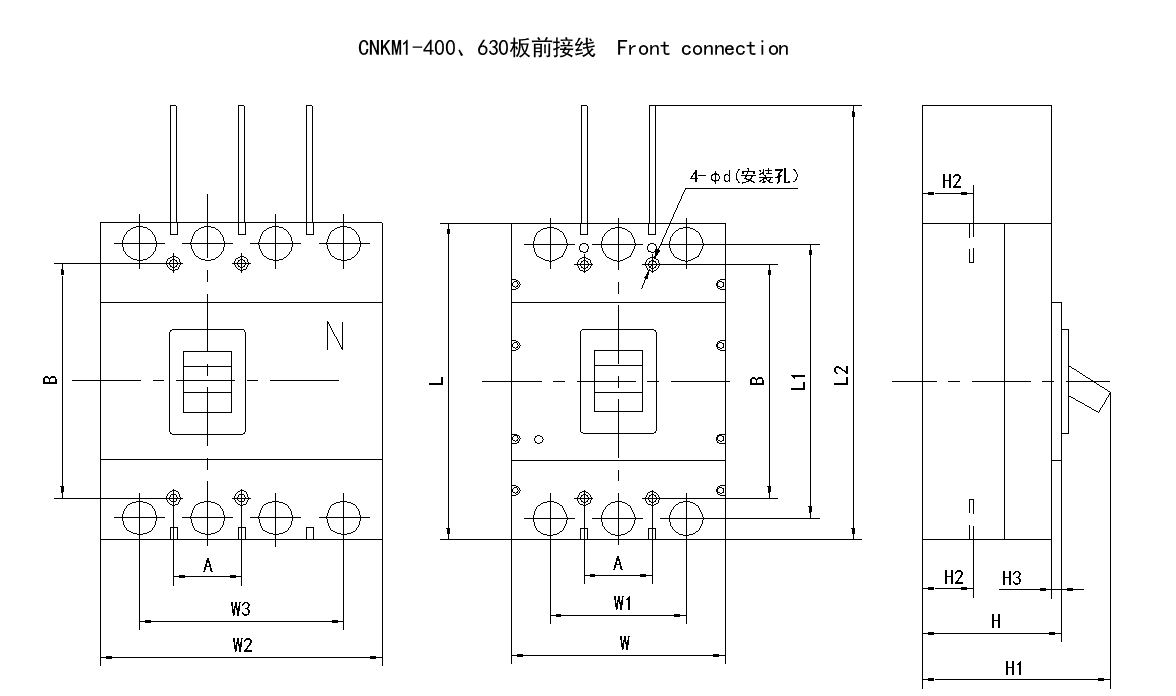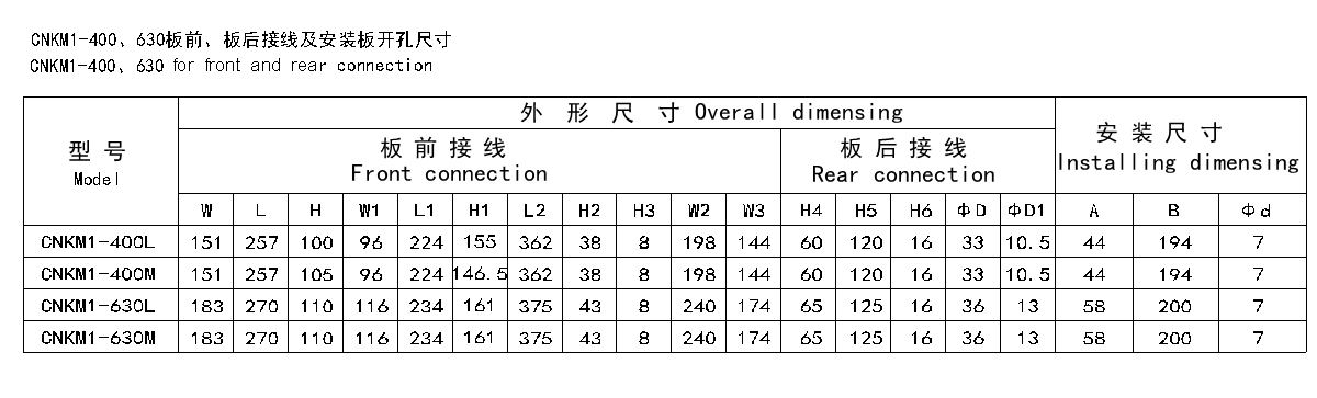 Series CNKM1molded case circuit breaker with rated insulating voltage  of 800V and rated current up to 630A, is applicable to switch distribution  circuits and motor circuits and protects cables and power equipment against  damages arose from overload, short-circuit or under voltage faults.